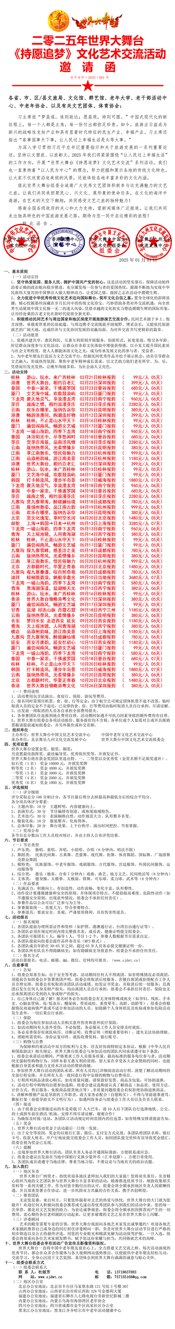 2025年世界大舞台《持愿追梦》文艺交流活动安排